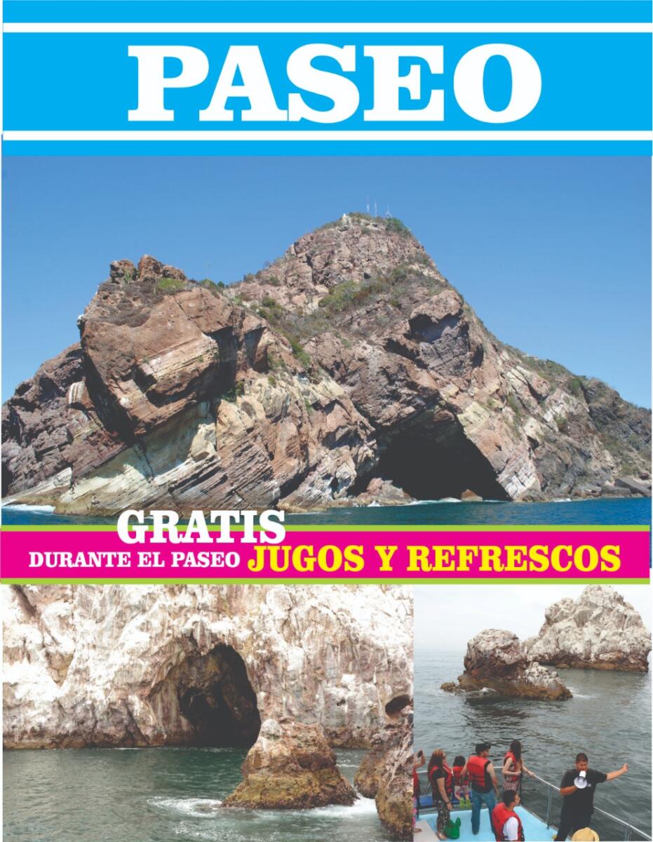 Descripción: Inolvidable paseo por la bahía de aproximadamente 1 hr donde los llevan a conocer el faro, cueva de la garganta, santuario de aves y la piedra de los lobos marinos. Posteriormente desembarcan en la isla de la piedra donde duran 3 hrs en las mejores playas de Mazatlán en un restaurante con todos los servicios.
