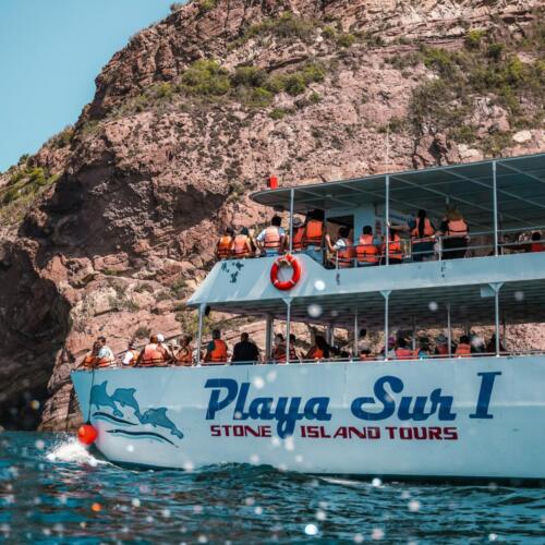Descripción: Inolvidable paseo por la bahía de aproximadamente 3 hrs donde los llevan a conocer el faro, cueva de la garganta, santuario de aves y la piedra de los lobos marinos. durante el recorrido van acompañados de banda sinaloense en vivo ideal para bailadores.